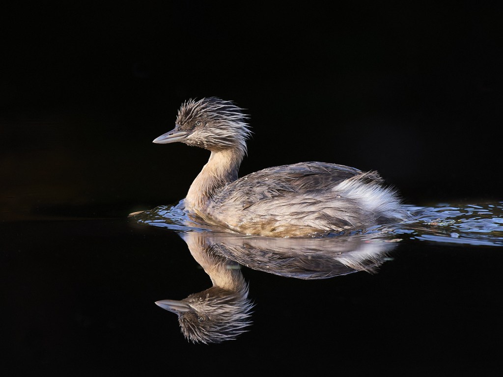At one place I had the sun behind me, brightly lit water to my right and water in shade to my left. A Hoary-headed Grebe swam from the light into the shadow giving me the chance to shoot high key followed by low key. Which do you prefer? Let me know.