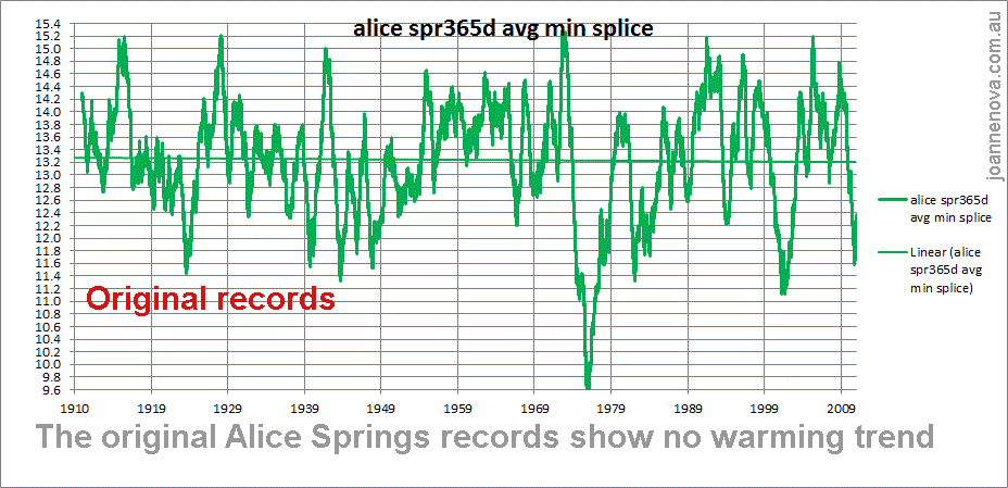 It is quite possible to show a warming trend by reducing records as well as by increasing them. Lower early minimum temperatures and voila a warming trend. The other example, once again click on the graph …