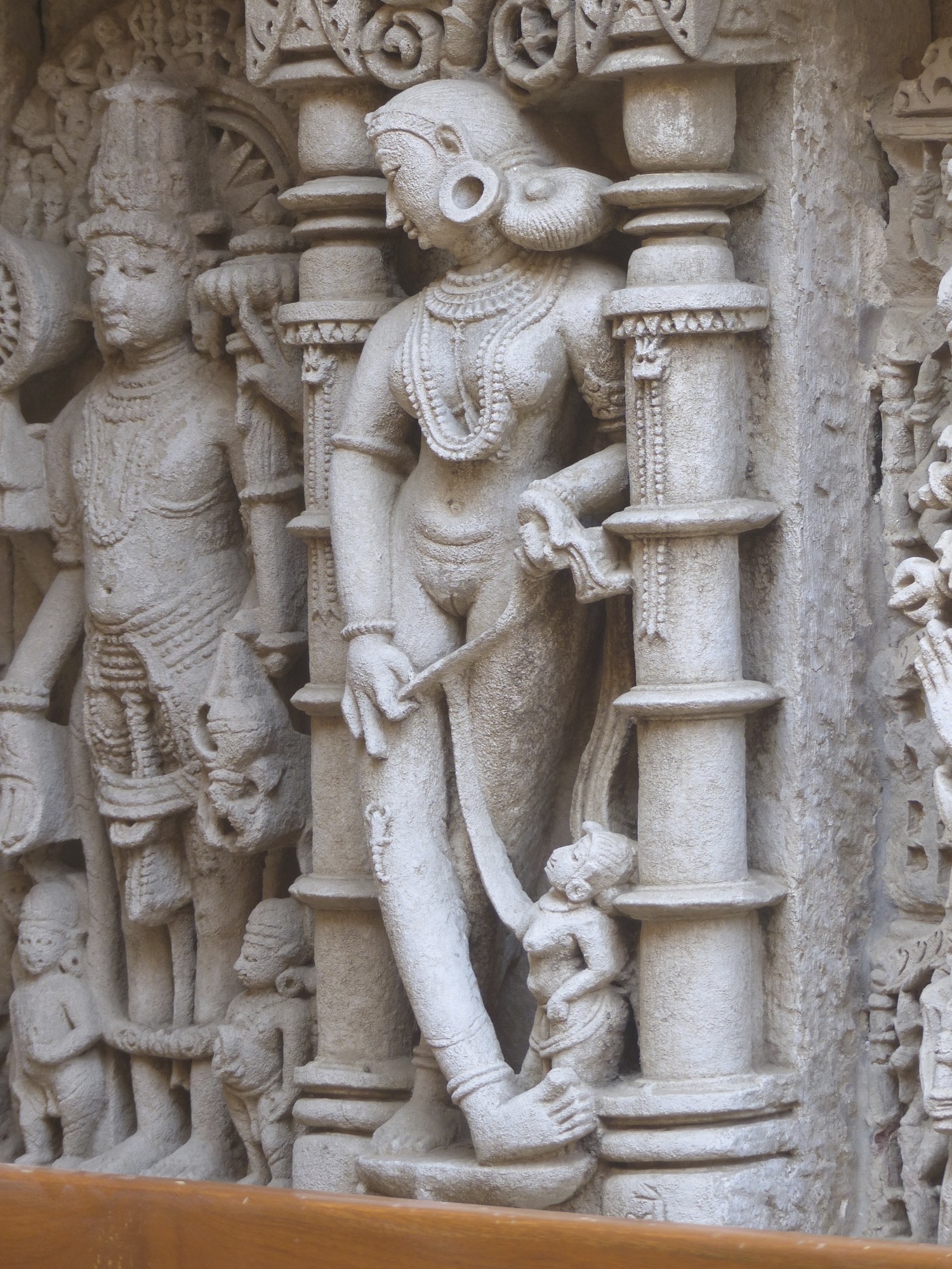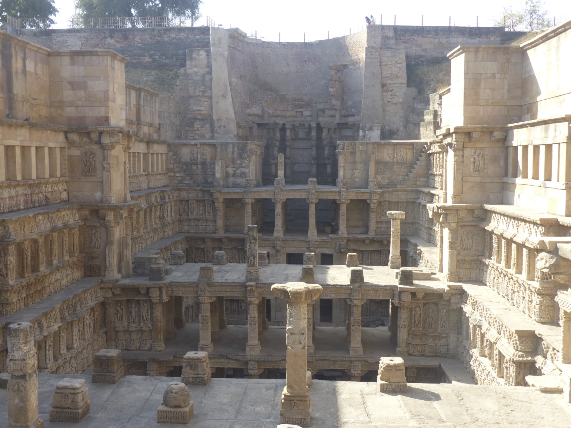 Gujerat is a dry state. In both ways … no alcohol and little rain. It is dry and sandy. Wells, therefore, had to be deep. A form of architecture evolved here where the wells would have steps down to the water, usually on just one side. They are mostly dug close to rivers or lakes and it came to be the case that providing such wells was seen as a meritorious act. The finest of them all is the Rani-ki-vav, or queen’s step well located just outside Patan close to the River Sarasvati. Once again it is a legacy of the Solanki dynasty. This one built by Queen Udayamati as a memorial to her late husband Bhimadeva I.