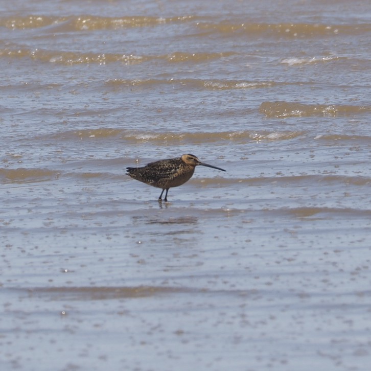 The waders, and there were many of them including some very nice Banded Stilt, were congregated on the lee shore with a very stiff westerly blowing. Once I found the congregation I searched on foot for the Dowitcher. Its breast stands out rather nicely.