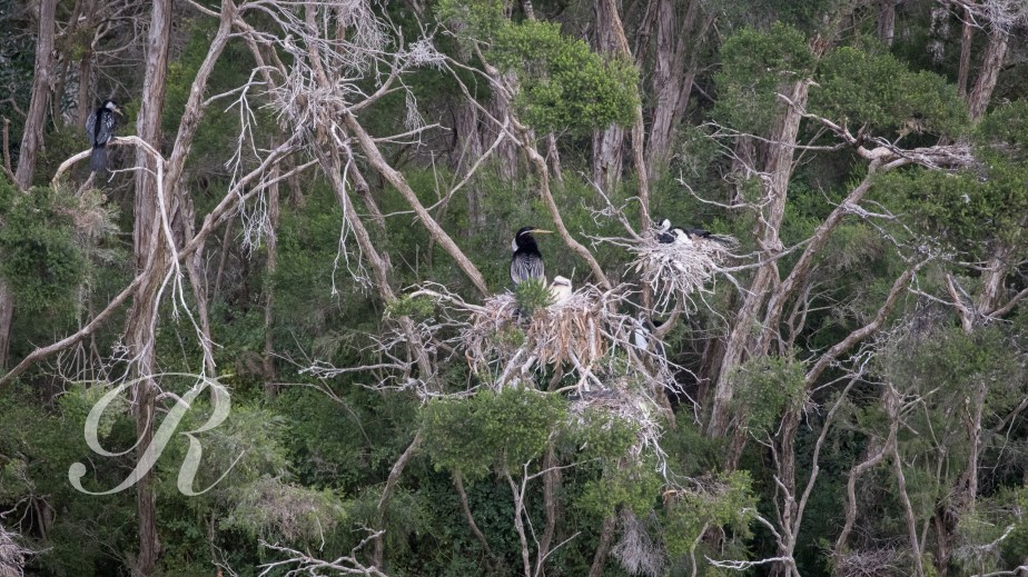 Darters and Little Pied Cormorants are nesting in the Paperbarks out on an island.