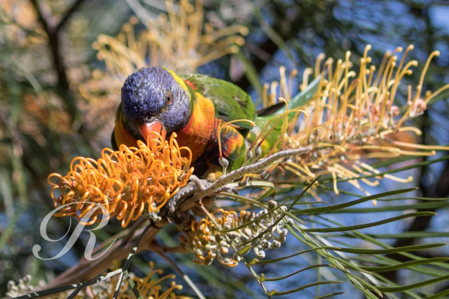 In Byron I’m staying at a friend’s house. Carole has the most amazing Grevillias, Callistemons and red pom-pommy things …