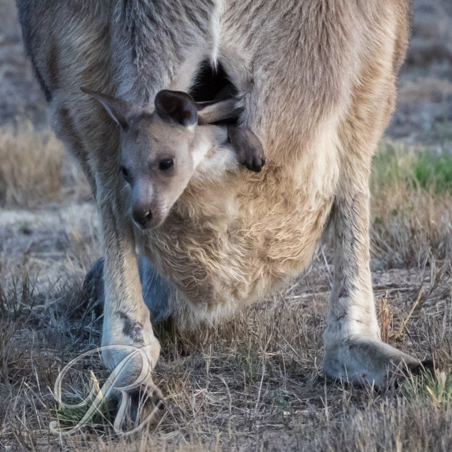 A mob of about a dozen adults plus pouch young came across my little farm the other evening. They were grazing as they came. I was accurate in my prediction of the route they would take. I hid in a large bush and they slowly made their way up to me.