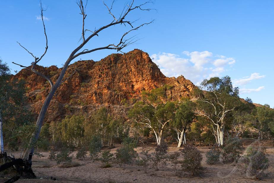 On our first visit to Alice Gayle and I flew, rented a car and stayed in town. On our first full day we drove out to have a look at the West MacDonell Range. The morning sun is behind you on the way out. The vista is magnificent and when the day is done the sun sets behind you as you drive home.