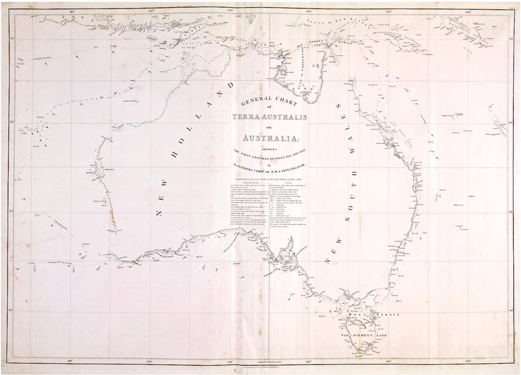 and note the name “Australia”. The word first appeared in print on a world map in a German astronomical treatise published in 1545. It is unknown if Flinders knew this and adopted it or coined the word anew. Certainly he popularised it so either way it is to him that we should give thanks for our name.