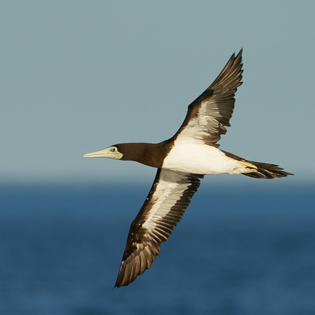 The scientific name leucogaster translates as white belly which might have been a better name than Brown because they are so dark that you need to be very close to see that they’re not black. Perhaps that was rejected because most of the other Boobies also have white underparts. The light bone-coloured bill indicates that this one is an adult female.