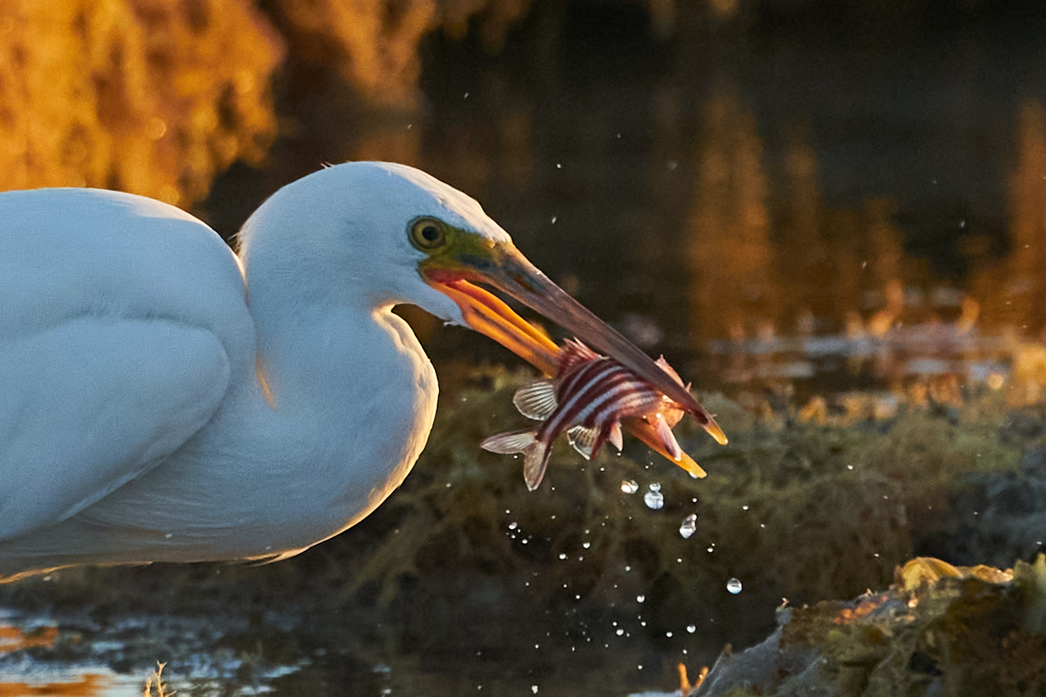 I turned away, reflecting on that gossamer thread only to find another Reef Egret enjoying the ocean’s bounty. Bon appétit.