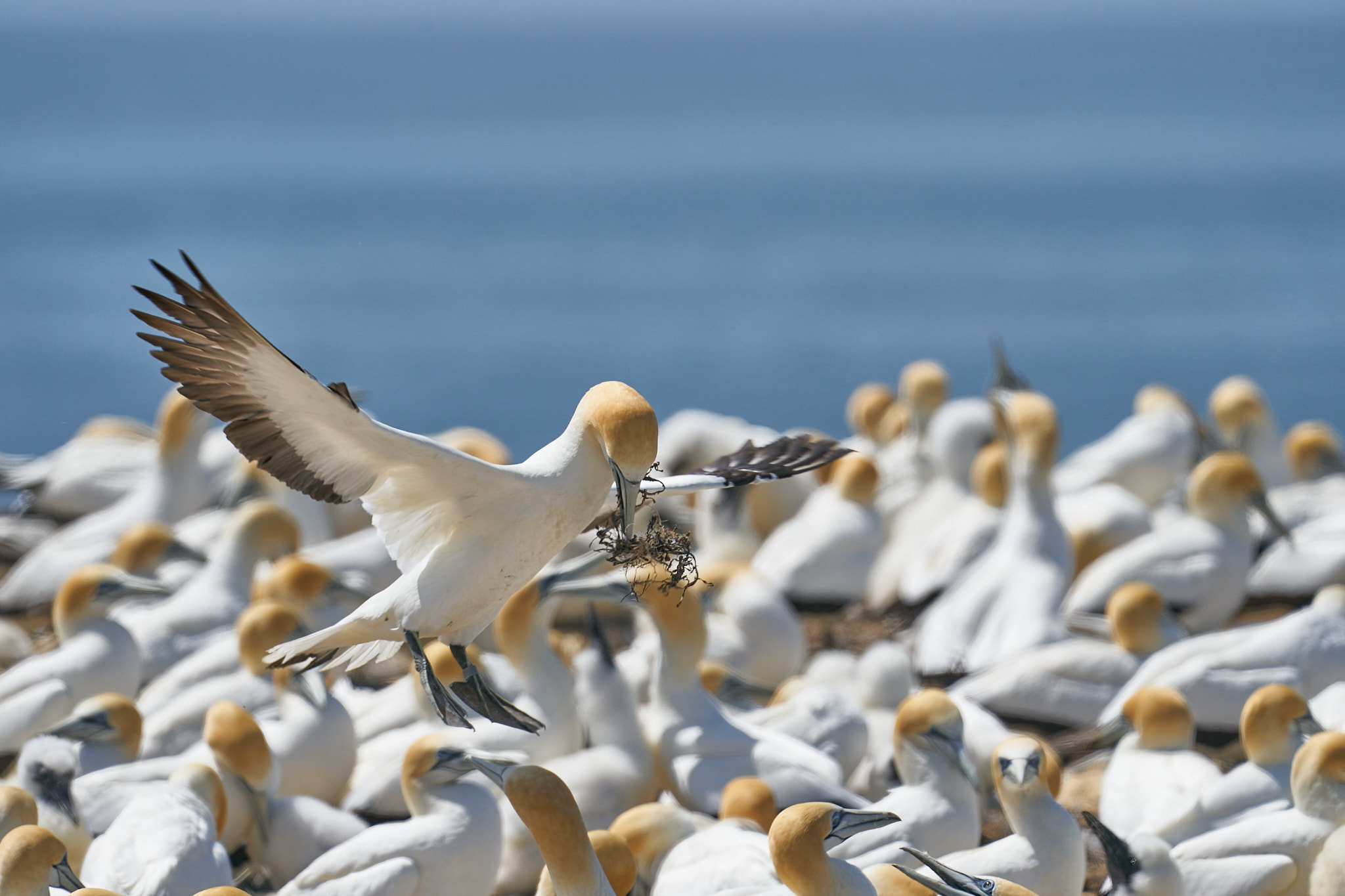 The parents will range up to 50km from the nest to bring back food for the youngster. They are spectacular plunge divers. It’s great entertainment when a squadron of gannets gets onto a school of fish.