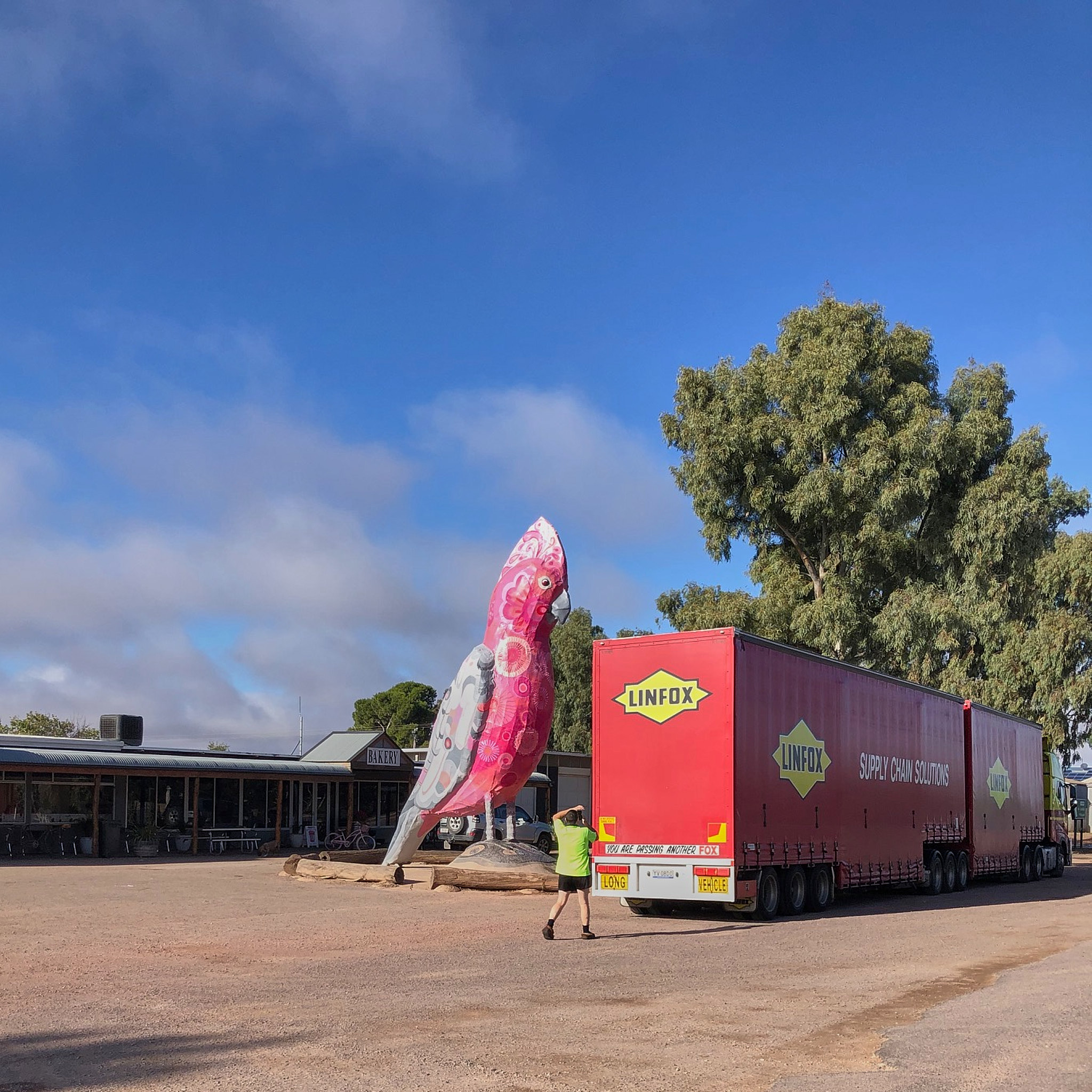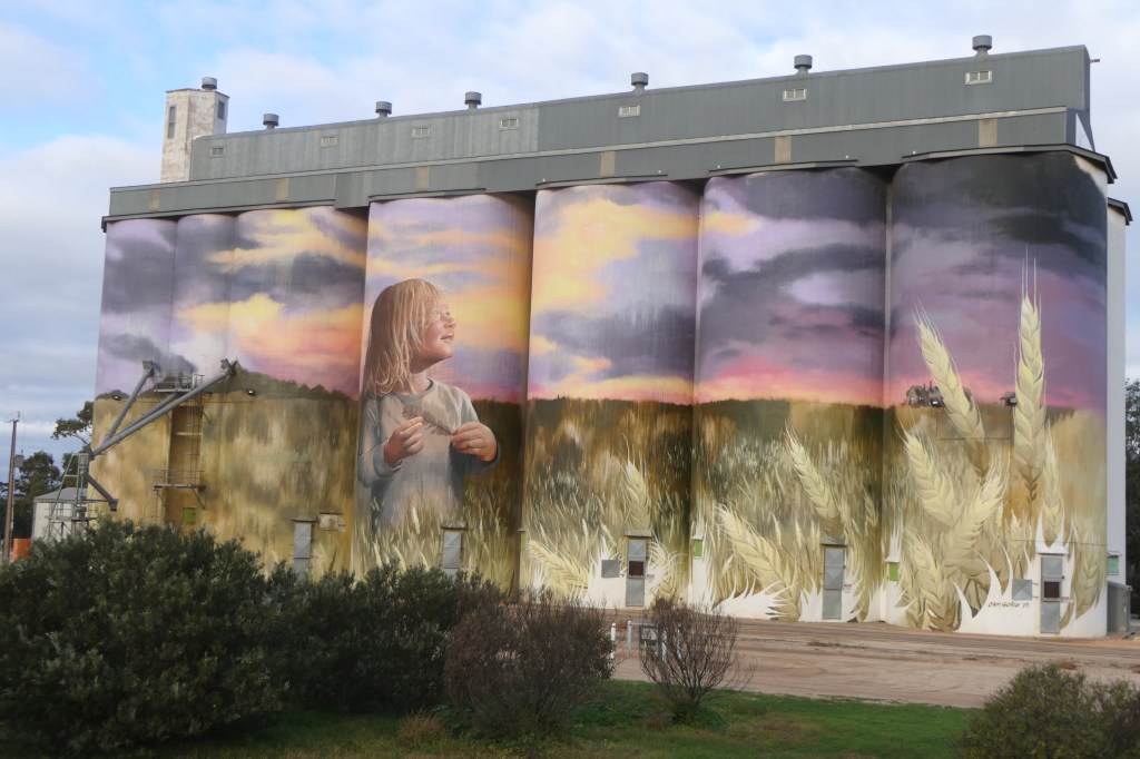 … is often the day on our travels when tempers tend to fray. This time it has passed without incident bringing us to Kimba in South Australia’s wheat belt. Established in 1915, population 1,300 it took its name from the local aboriginal word for bushfire. It’s now the home of the big Galah, some silo art and the Kimba Tigers footie team.