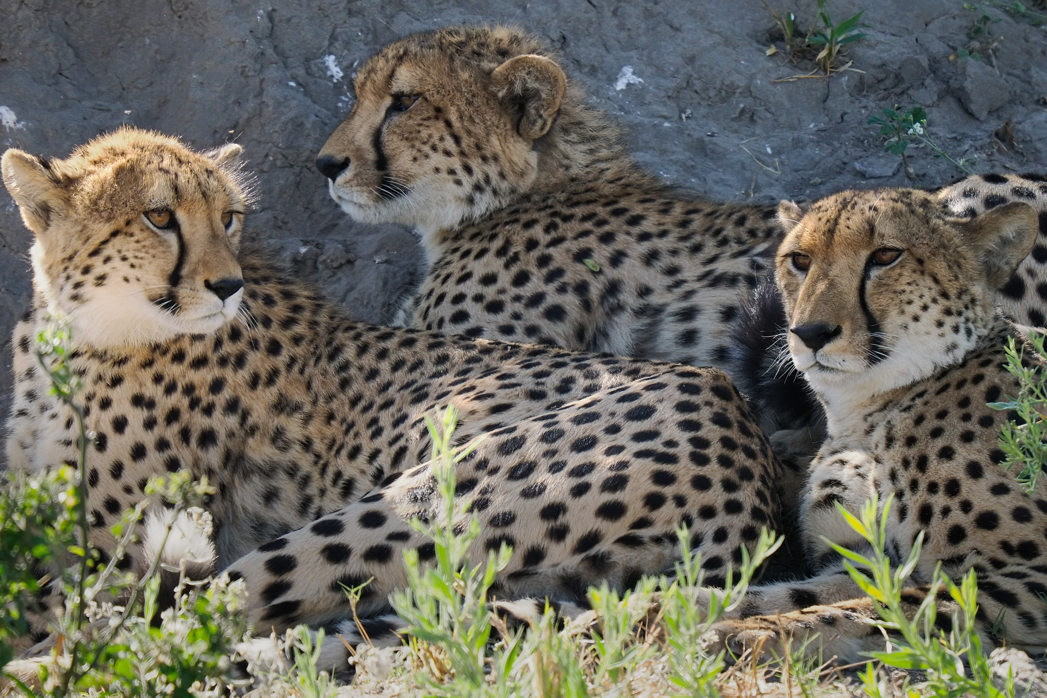 Males tend to live territorial lives in small coalitions usually of brothers. Females roam more widely on their own or with their youngsters. Males and females come together only to mate.