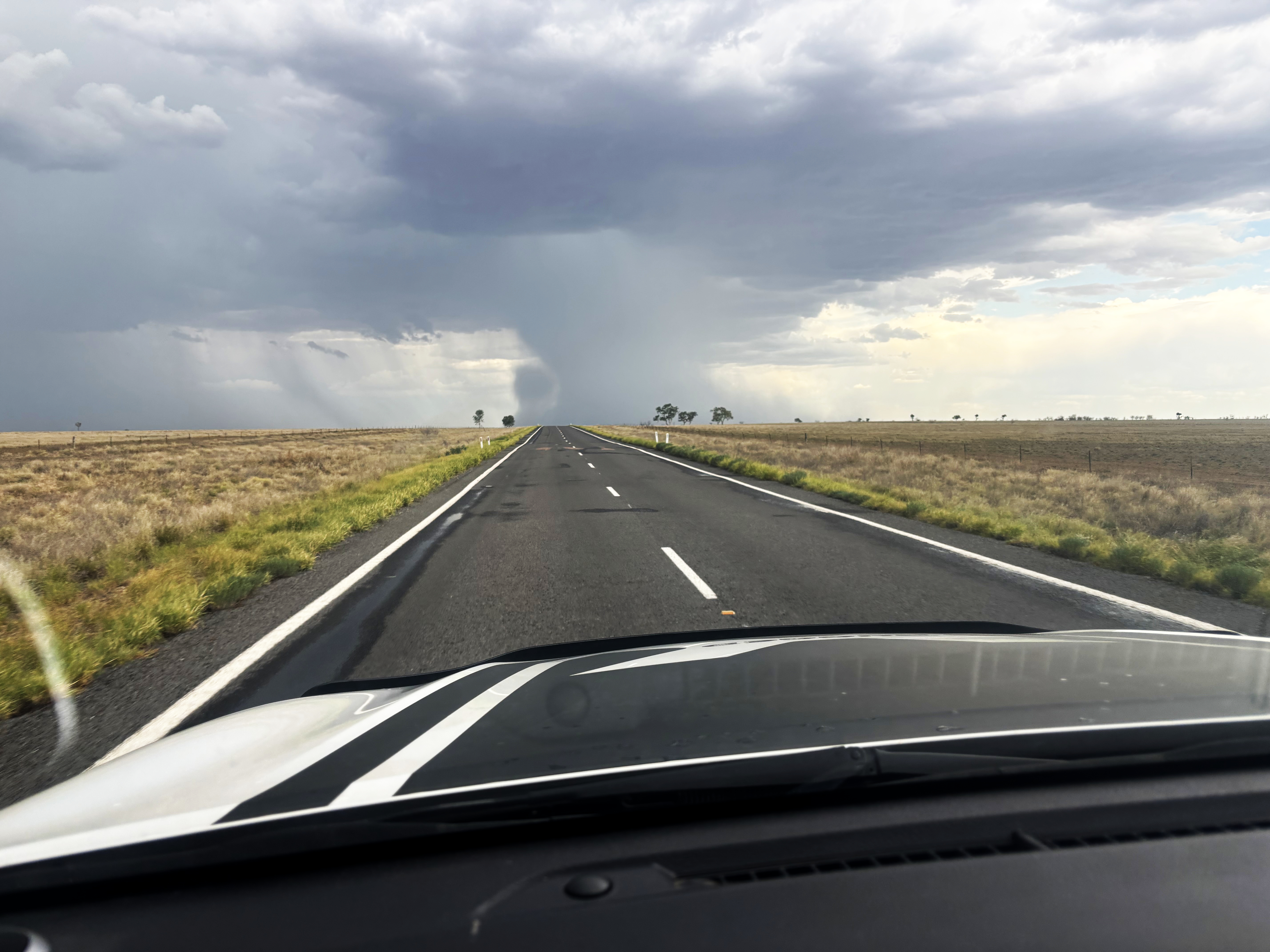 We couldn’t see much at all when it hit. The storm followed us to Winton …