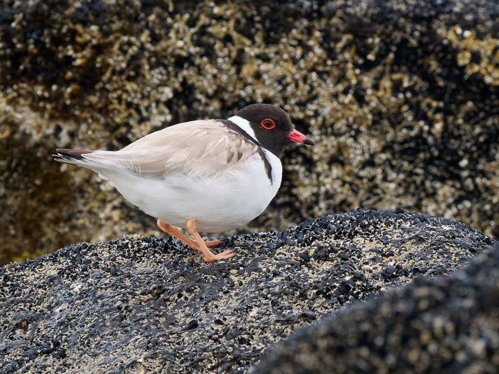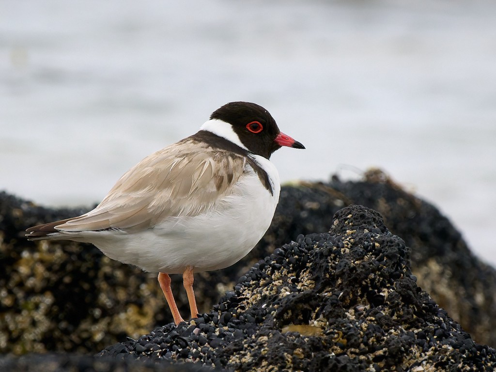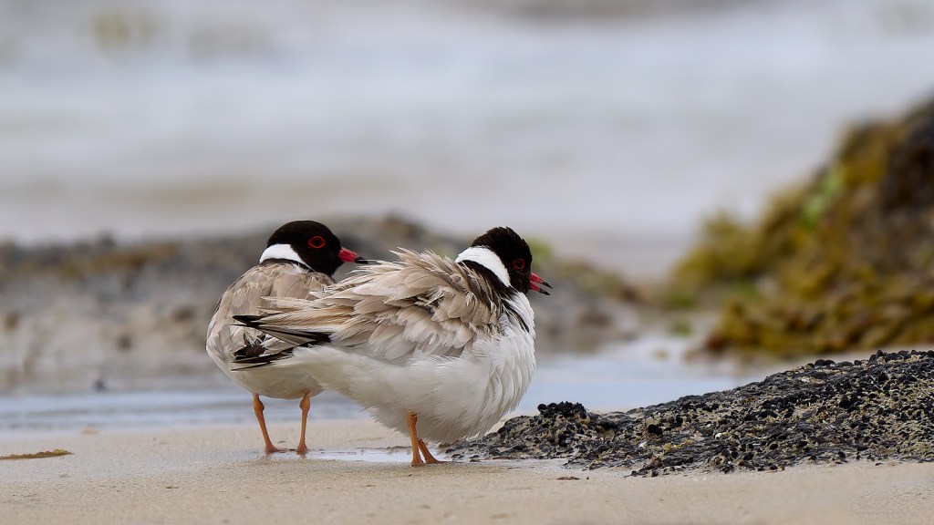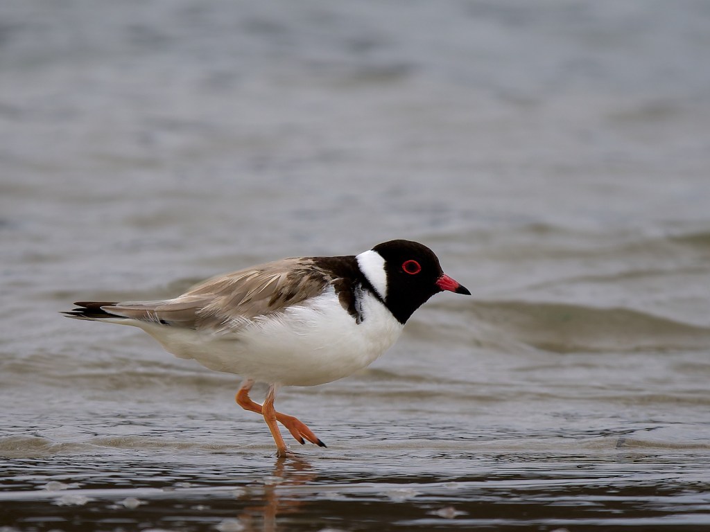 More formally the Hooded Plover, Thinornis cucullatus, surpassed in cuteness only by the Giant Panda (and even then only if the Panda is in a playful mood). There are two populations, in south-eastern Australia they are entirely coastal. The Western Australian population enjoy the coast but also wander inland onto salt lakes. They like broad beaches backed by dunes where they nest on the ground above the high tide mark.