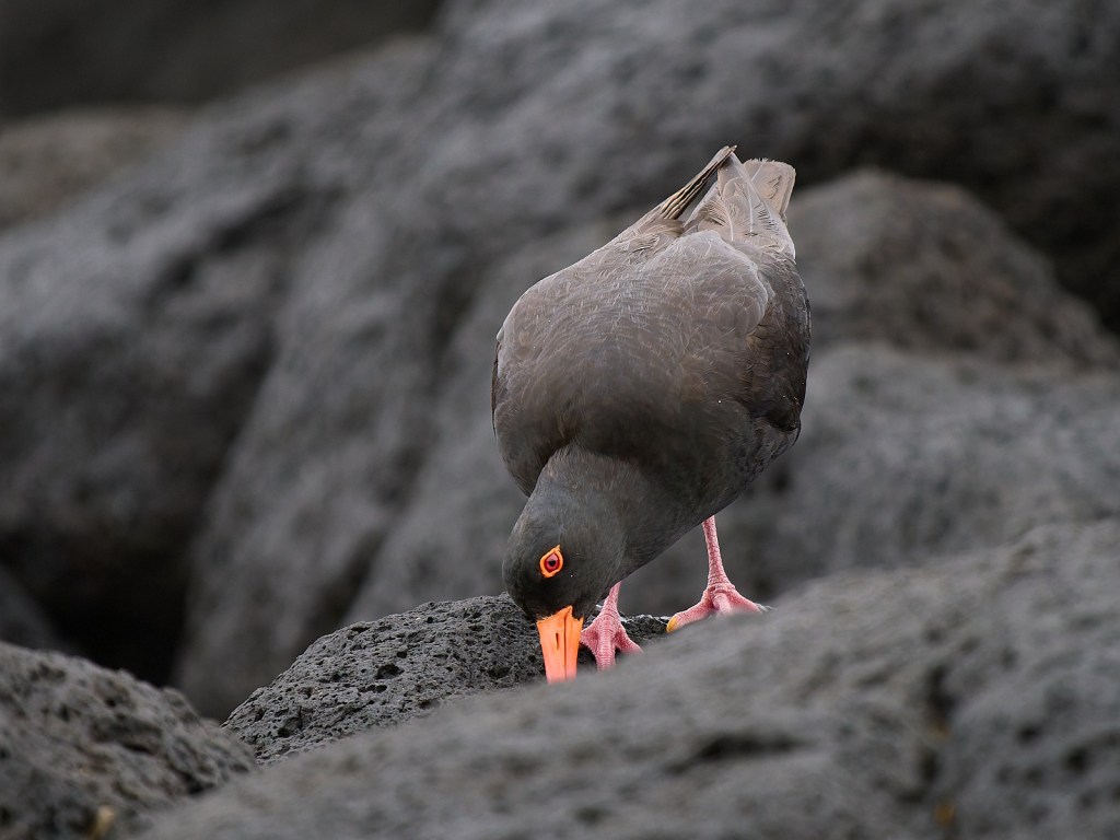 The rocks are fuliginous and the bird is fuliginous. What better way to show off the red bits? It’s the Sooty Oystercatcher. The first of its group to be described was the Eurasian Oystercatcher, Linnaeus 1758. It was the red bits that inspired the genus he created for it, Heamatopus, from the Greek, blood and foot. No surprise then that the Sooty Oystercatcher is Haematopus fuliginosus.