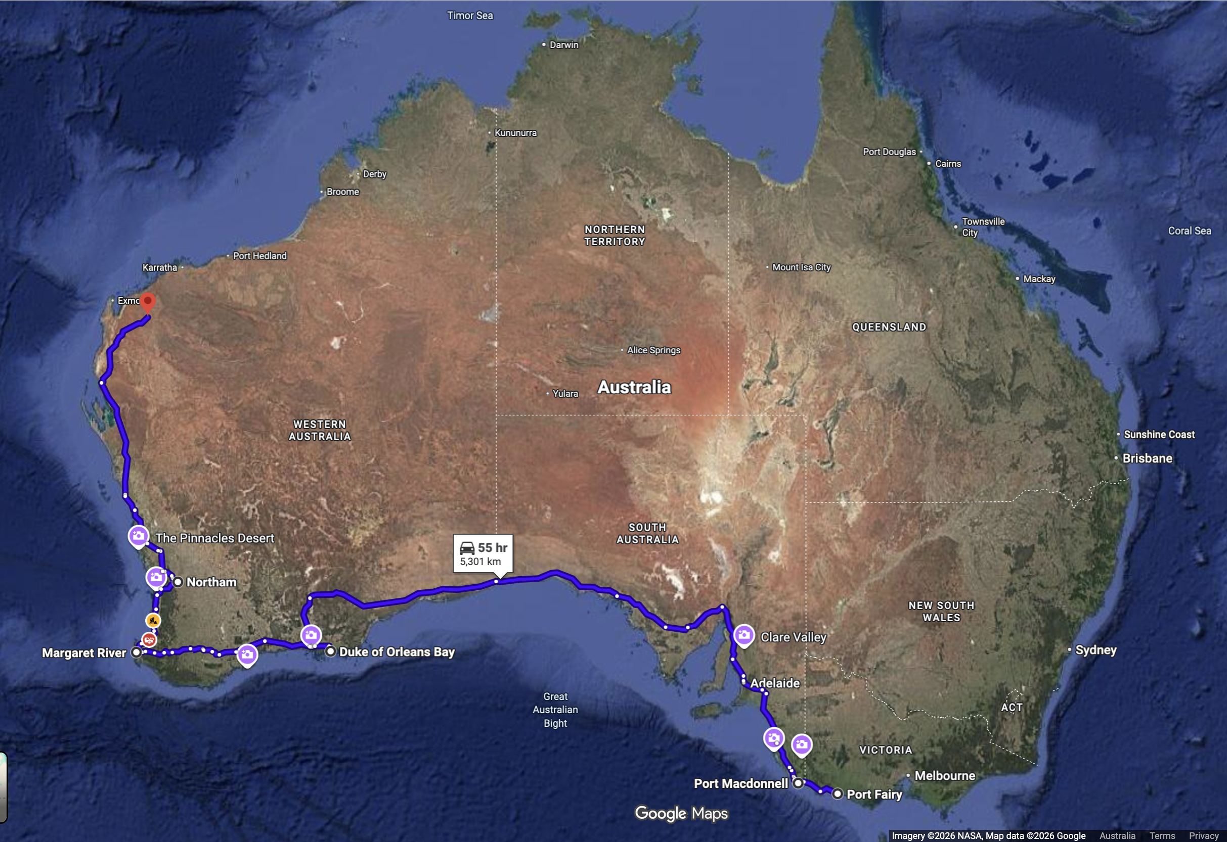It shows that Port Fairy is 5,301km behind us along a reasonable representation of our route. Somehow we manged to do 7,407km to get here. Broome is 1100km to the north west and I’m sure we can inflate that figure as well. Back in Port Fairy the expected maximum temperature is 18°C. Eighty Mile Beach, our campsite tomorrow night is expecting 40°C. Our reward for enduring such horrors are birds like this which I photographed yesterday at the Murchison River.