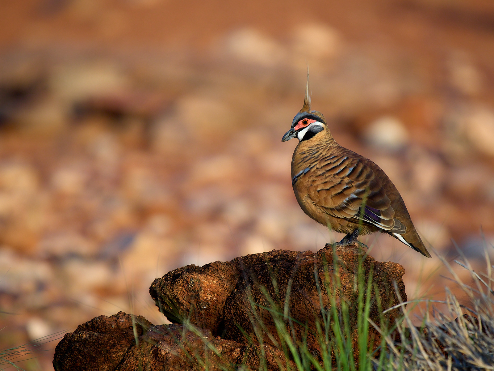 The Pilbara gave some interesting opportunities. The frontal cortex sends out expectation waves as I travel north. One that was satisfied in the first morning in the Pilbara was Spinifex Pigeon showing very nicely in warm morning light at Nanucarra.