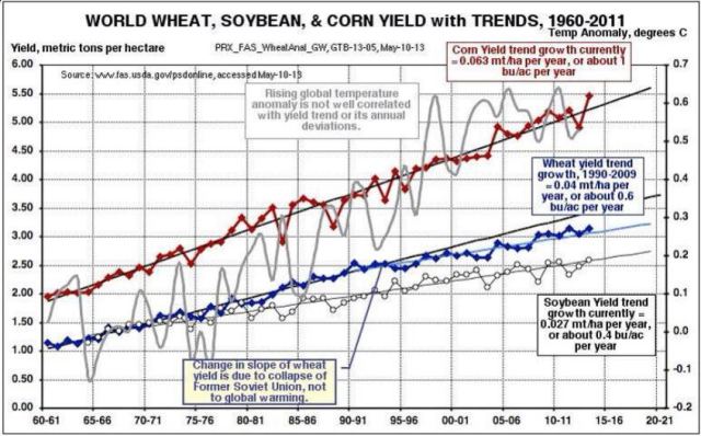 The warming hiatus must have produced a few cases of nerves at the ABC, the only thing keeping pace with the continued increase in CO2 being the gap between the predicted temperature and the actual temperature. IPCC’s recent Summary for Policymakers clearly came as a great relief. You could hear it in the presenter’s voice when telling us of the negative impact of climate change on crop yields.