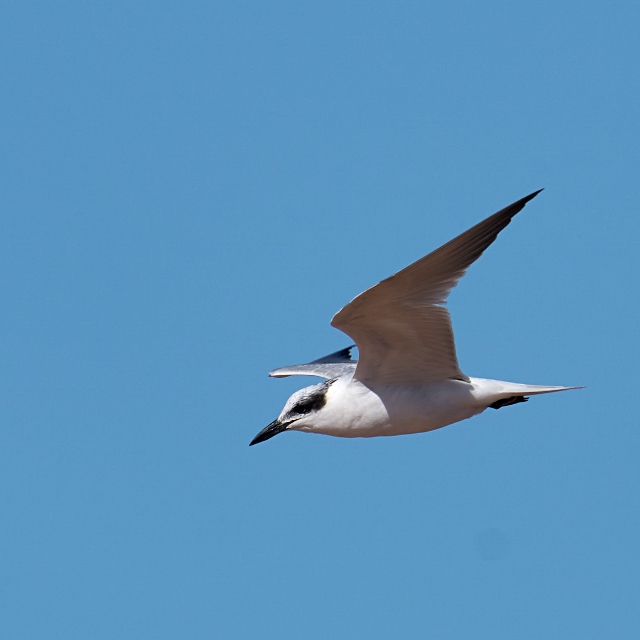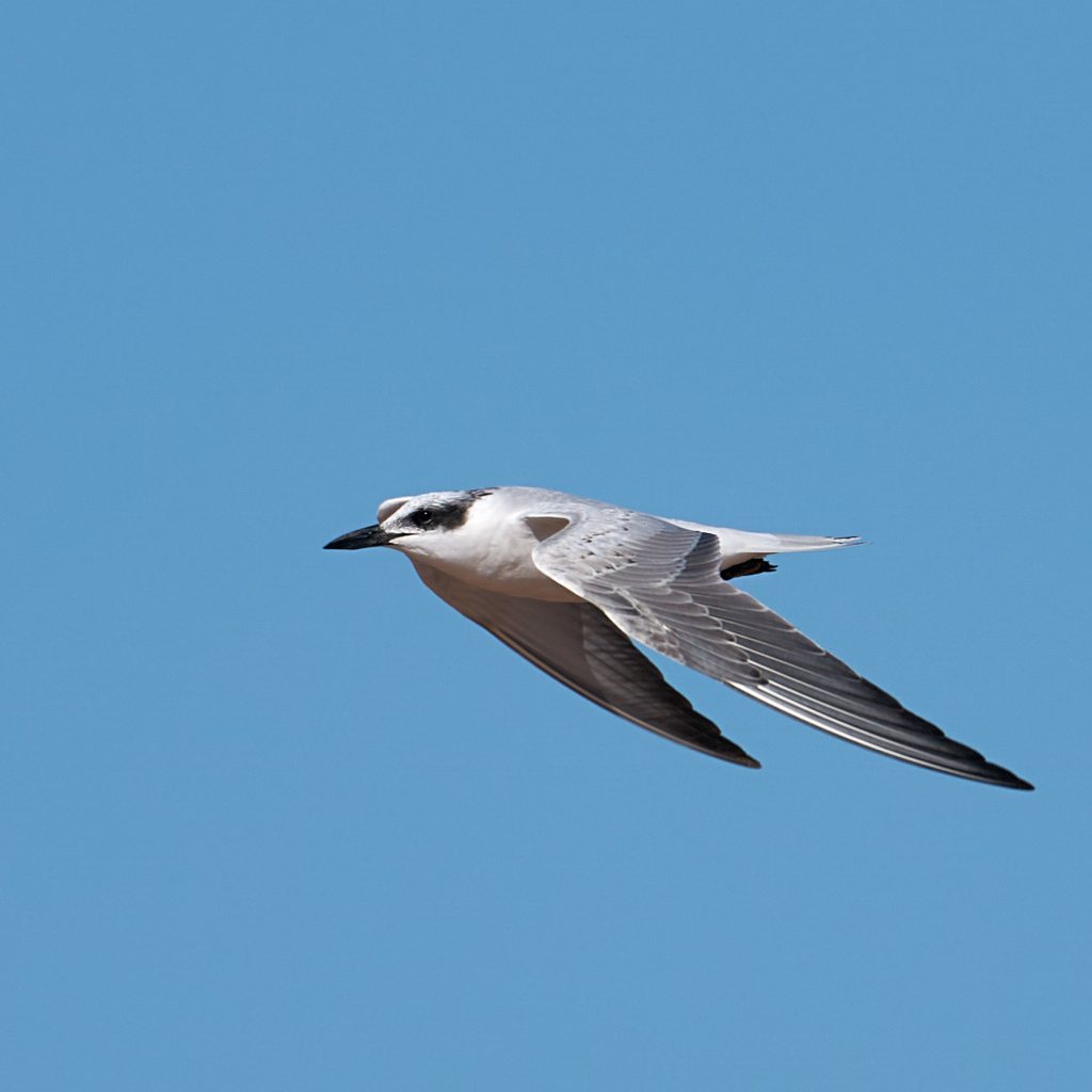 These photos of a Gull-billed Tern were taken at one two thousandth of a second so fortunately there was plenty of light. I prefer flight shots with wings up. I feel they convey a greater dynamism but they are often marred by the shadow cast by the wing. If you click on the wing down shot the feather detail on the wing makes up to some extent for the less dynamic pose.