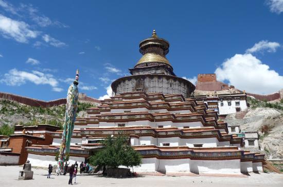 It is the same design and size as the Gyantse Stupa (Kumbum) in Tibet, 50 metres square at its base and nearly 50 metres high.