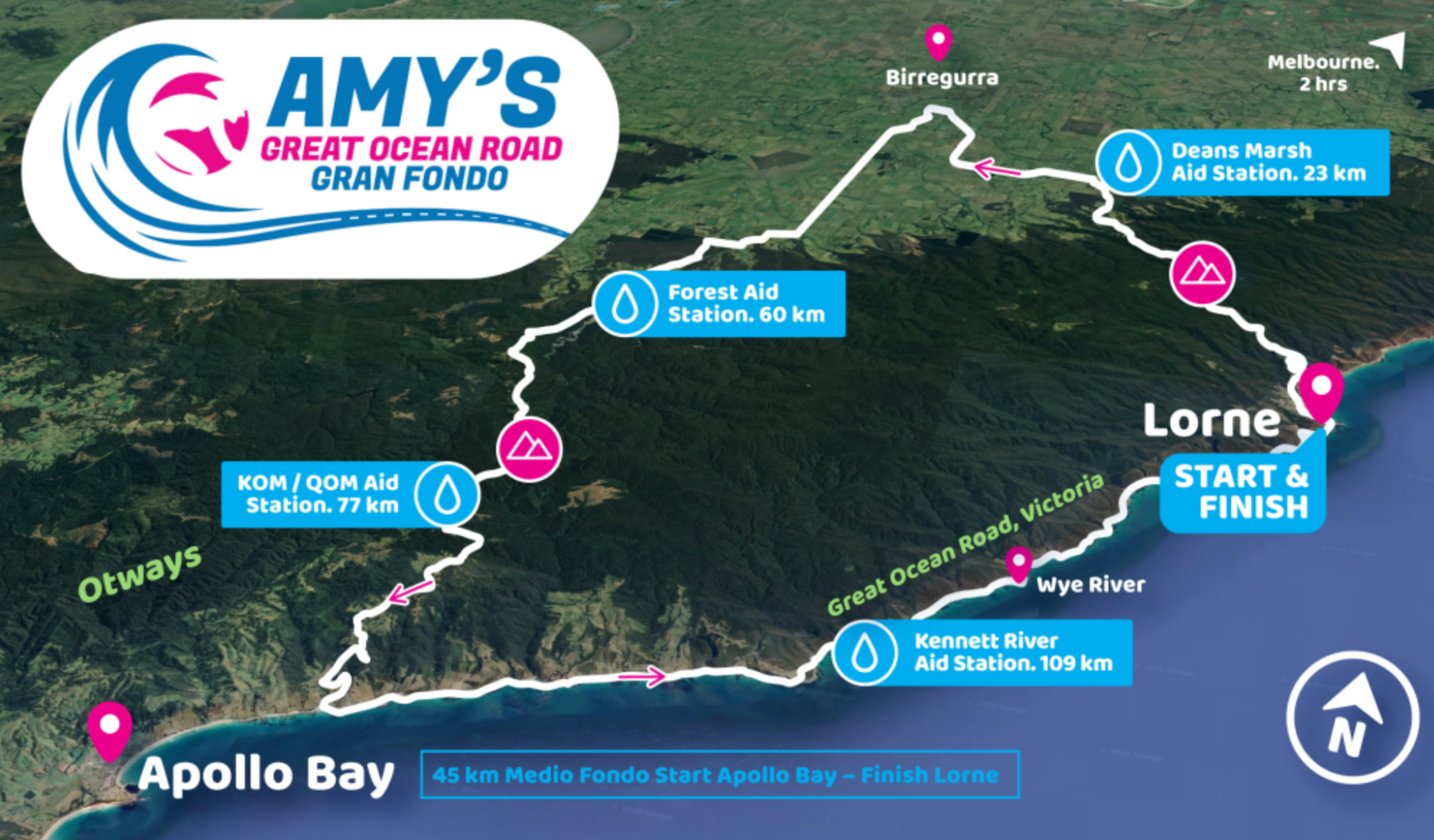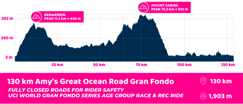 What about something very similar – Amy’s Gran Fondo on Sunday October 24 starting and finishing at Lorne. It’s a 130km course climbing over some now familiar hills and then running along the Great Ocean Road.