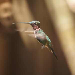 They tend to be small, most are in the range 7.5 to 13 cm. They are the only birds that can fly backwards when they want to. Their energy requirements are very high, their payload isn’t so they run on a very tight energy budget. They have some special adaptations, such as the ability to enter a state of torpor, to bridge non feeding periods. Despite the challenges some species make long migration flights. They meet their energy requirements from a diet of nectar and the remainder of their nutrition is from insects.