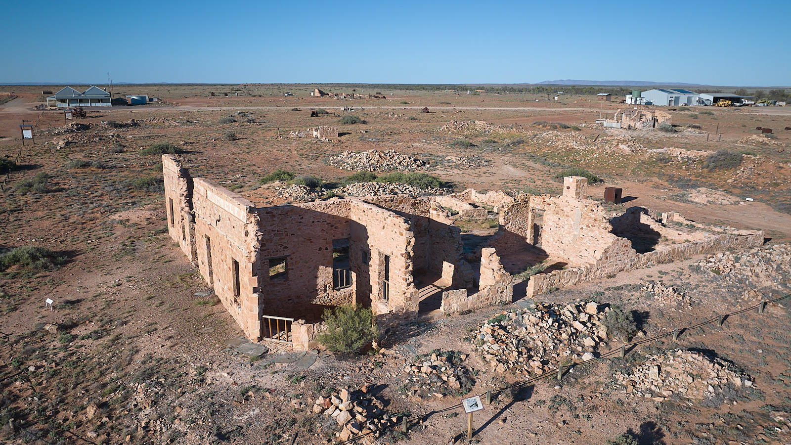 A number of things had conspired to draw people north from Adelaide. As dry as it is, cattle and sheep can be grazed in the hinterland. The railway provided a good way to transport them to market. The telegraph and the railway provided employment. And of course, at the time it was thought that the rain would follow the plough. Plant your crops and the rain would come, a theory promoted by scientists of the day such as the noted American climatologist Cyrus Thomas. The settlement here was founded in 1878 as Government Gums. Its name was changed to Farina to reflect the intention to grow wheat. It grew to reach a peak population of approximately 600 in the late 1800s. It was the rail head for a time. In its heyday, the town had two hotels (the Transcontinental and the Exchange) and an underground bakery, a bank, two breweries, a general store, an Anglican church, five blacksmiths, a school and a brothel. Wild oats were sewn but no wheat was grown. All that remains today are the ruins and the cemetery.