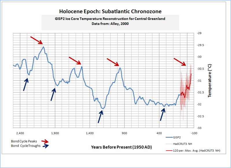 Also aware that there has now been no significant warming in 17 years despite an increase in atmospheric CO2. There is, in fact, no convincing evidence that the climate is doing anything different from its previous behaviour at all, temperature may continue to trend up or even down. There is a considerable amount of evidence that up will provide a net benefit to human productivity and it is abundantly clear that previous down turns in temperature have been rather bad for civilisation. Nonetheless the Deputy Director argues …