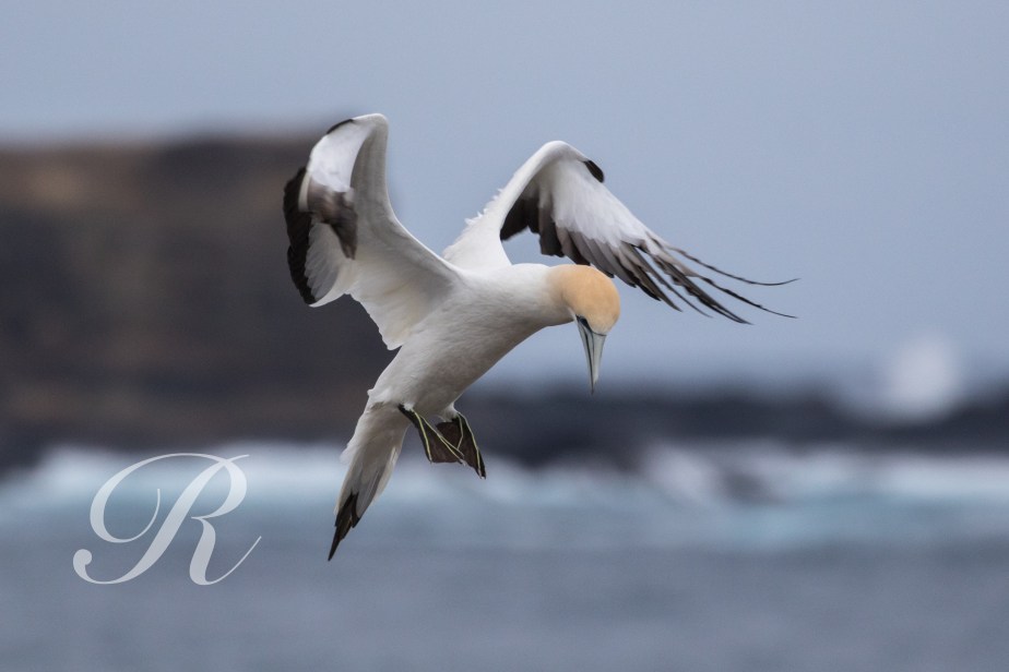 Not far from Portland, near the western end of Victoria’s coast, you can find a nesting colony of Australasian Gannets on the mainland. All the others are on offshore islands. This one began in 1996 and is the extension of a large colony on the nearby Lawrence Rocks. Seabirds tend to return to their birthplace to mate and there was simply no more room at the inn.