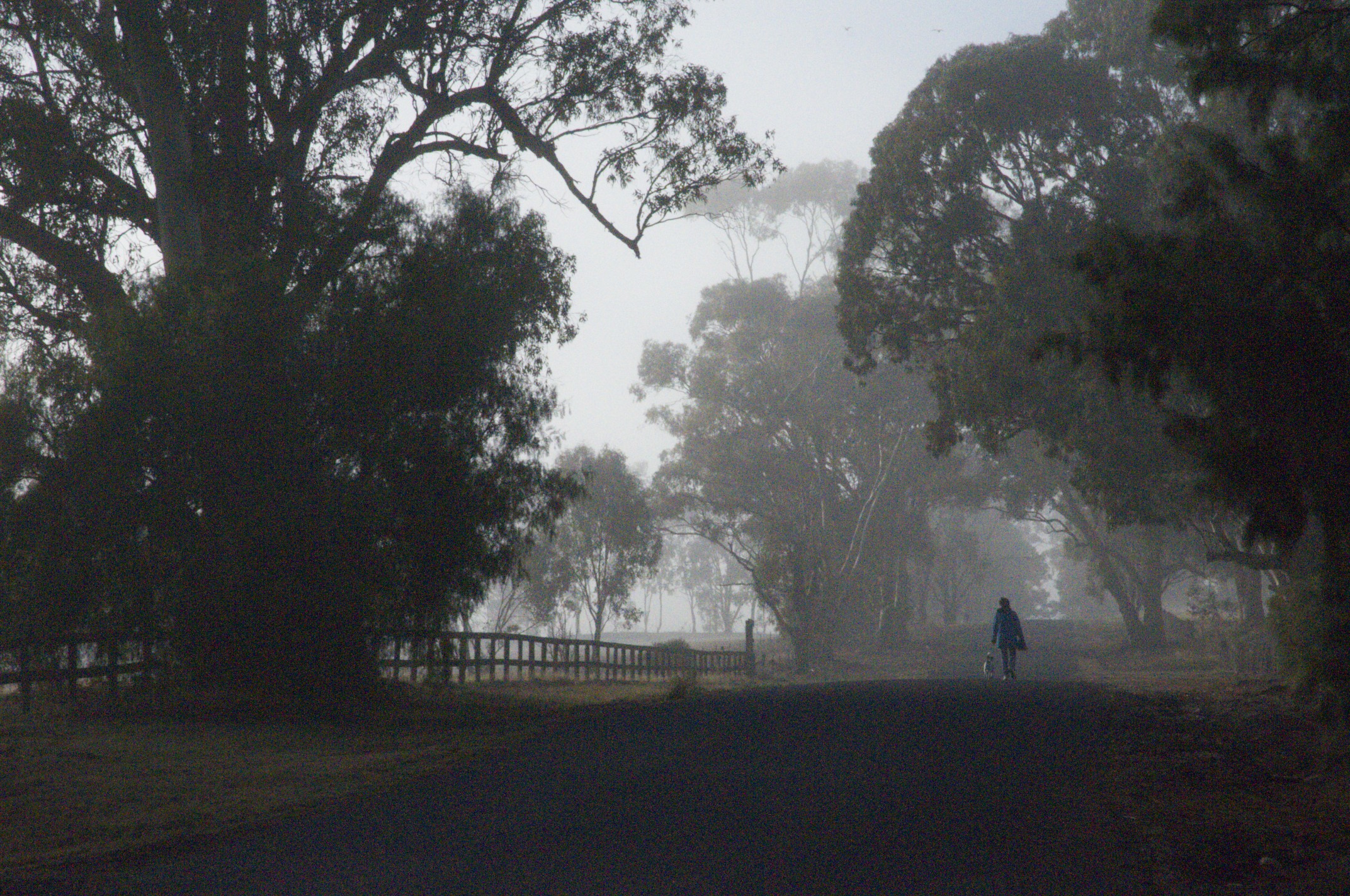 Saturday morning we had our first frost for the year, as the sun gots its edge over the trees along the creek it highlighted a mist suspended on an inversion about 20 metres above the ground with a red sky backdrop, by the time I got the camera the whole place was enveloped in fog.