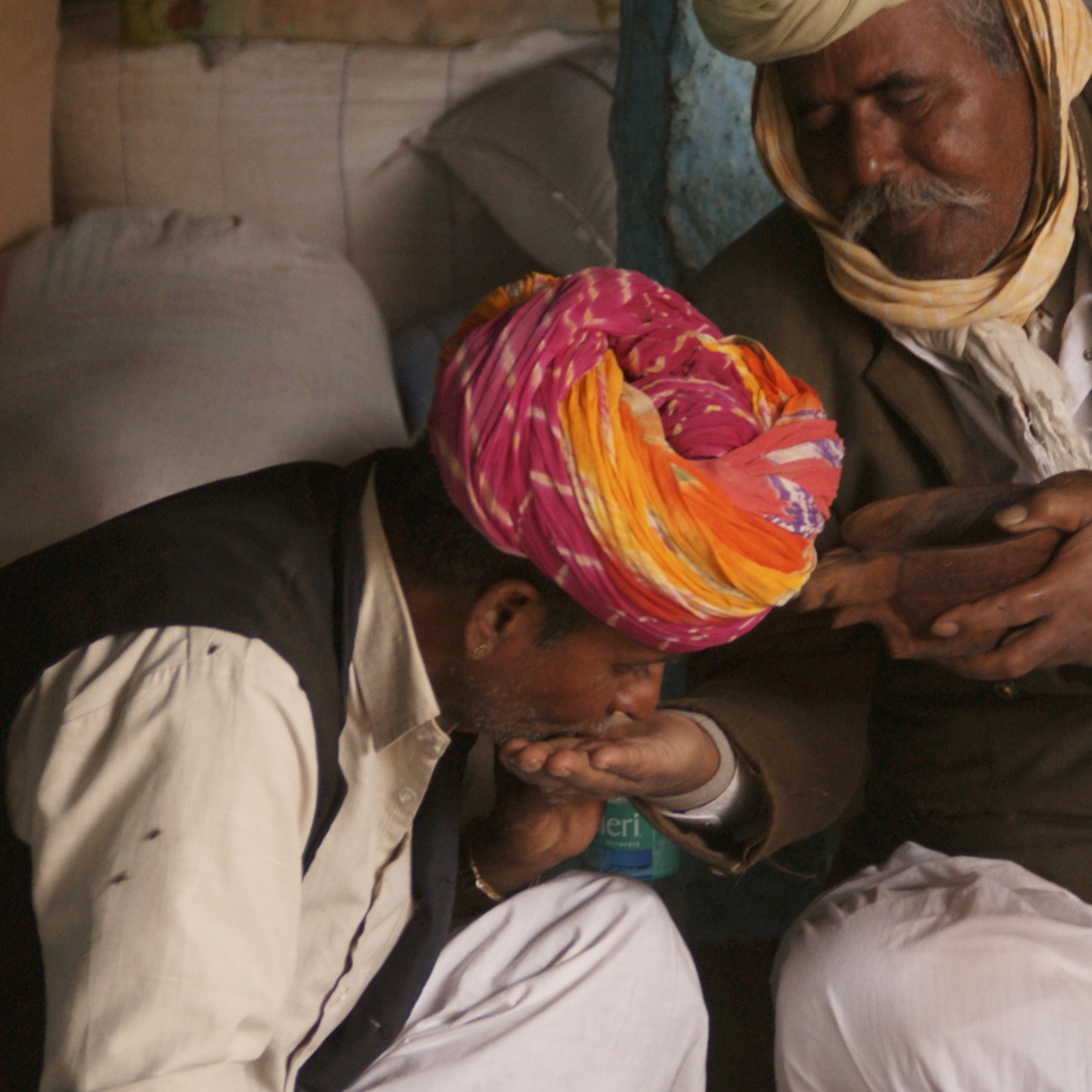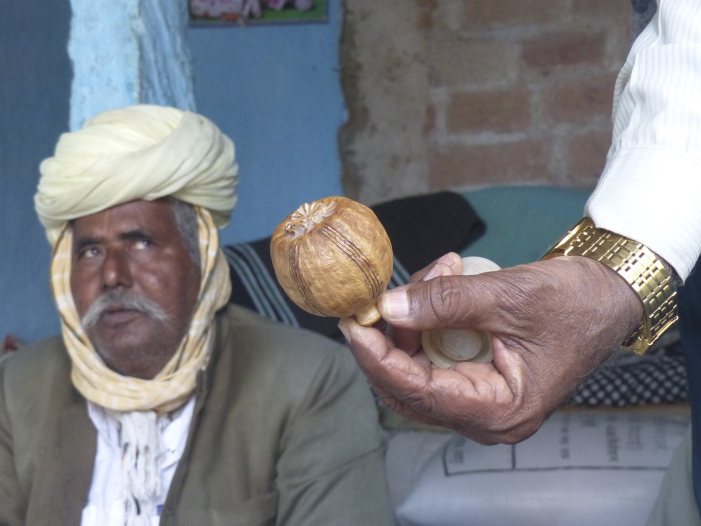 As far as I can determine, opium is illegal in India. Its use persists, especially in north-west India in certain ceremonies. When a marriage is arranged the father of the groom and the father of the bride may well drink an infusion from each other’s hand. The opportunity to welcome strangers to a village is also a suitable excuse to indulge.