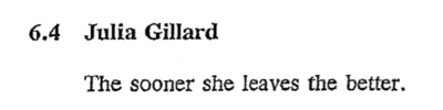It has to be noted with considerable approval that Premier Bucket of Queensland has acted decisively to excise this cancerous growth from the Labor body politic, waiting only long enough to secure his vote in last Friday’s confidence motion and for him to resign. It will be six weeks before parliament sits again. If that seems of dubious virtue, she is a paragon when compared with Julia Gillard’s handling of the Thomson affair or Ted Baillieu’s sheltering of Geoff Shaw.