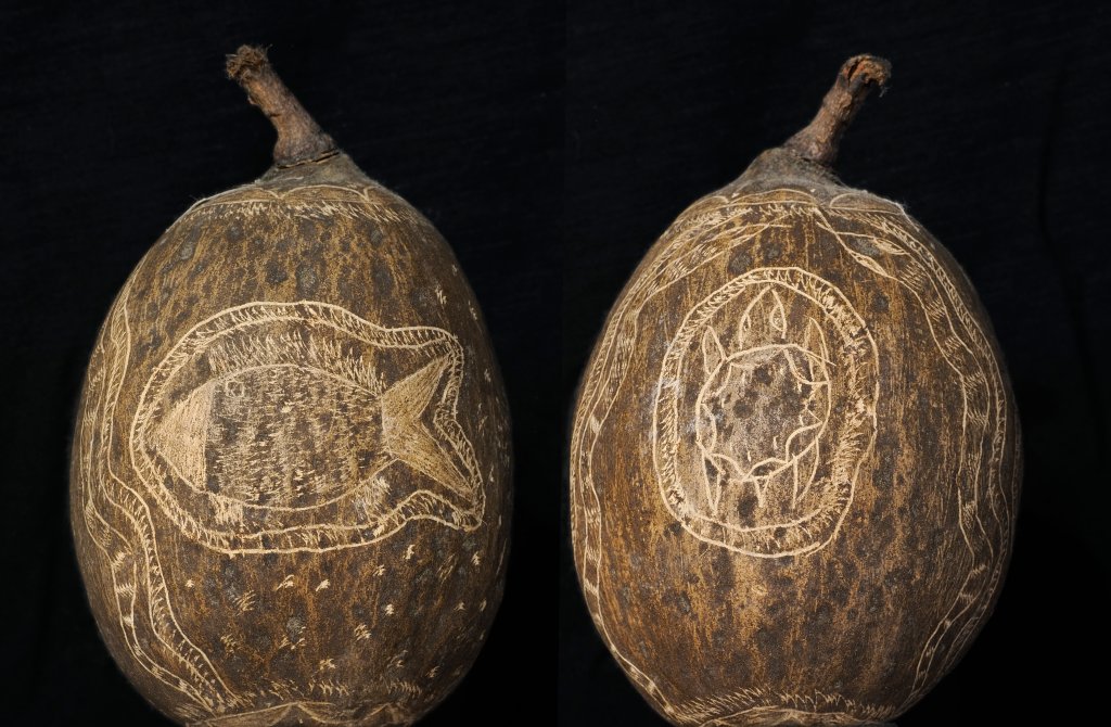 The Yawaru people of Broome have a traditional craft of carving designs in pearl shell. Some have transferred the art to carving Boab fruit. You can buy them in the market hot off the knife. I bought one 20 plus years ago. They last quite well …