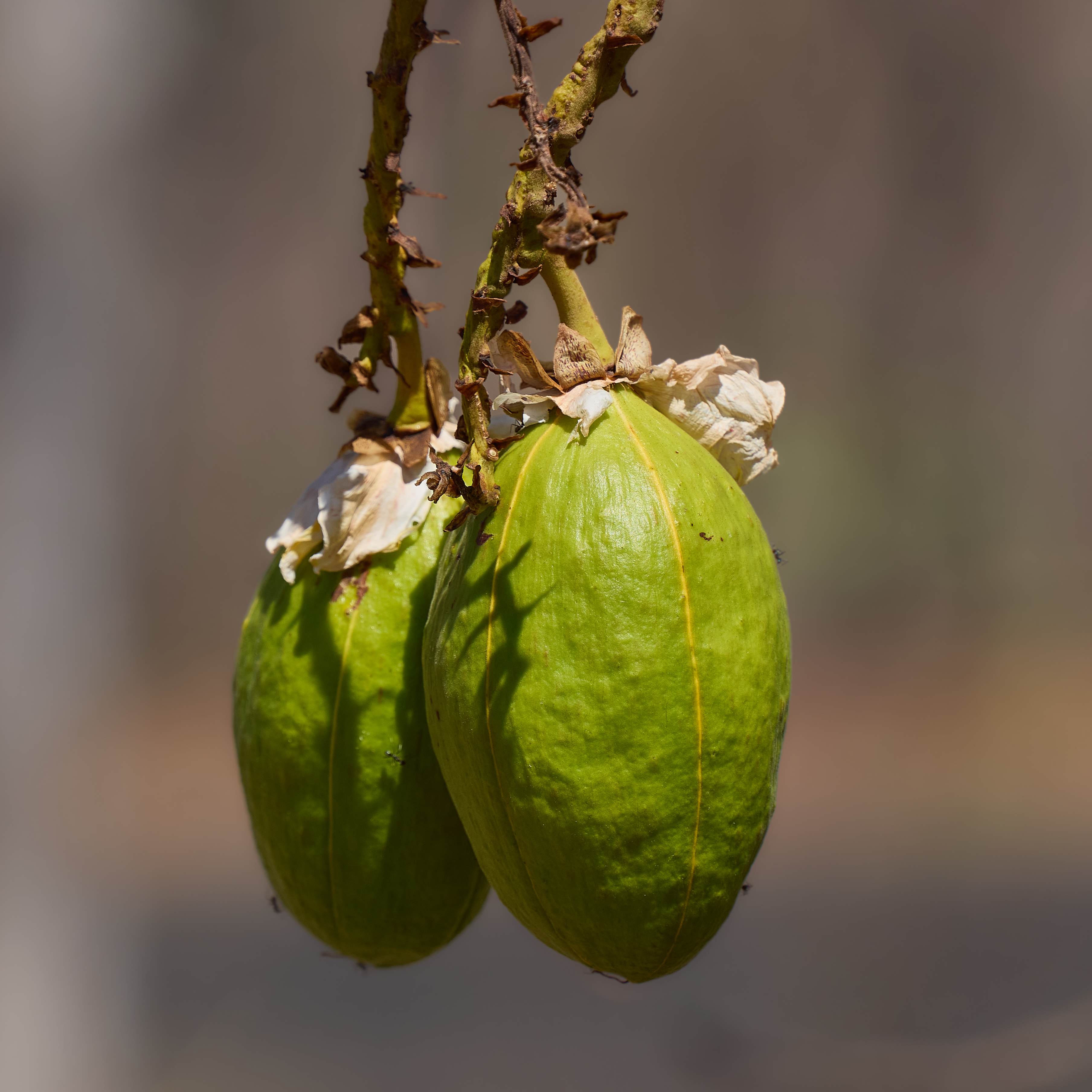 The genus is Adansonia. There are eight species. Six are endemic to Madagascar where the genus almost certainly evolved. There is another species in Africa and last but not least is Adansonia gregorii found in north-west Australia. They are very long lived deciduous trees that grow in seasonally arid parts of the world. There are Adansonias alive today that were old when Christ was born.
