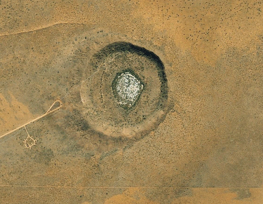Some time in the Pleistocene 50,000 tonnes worth of meteorite came to visit. It’s about 875 metres in diameter and 60 metres from the present crater floor to the rim.
