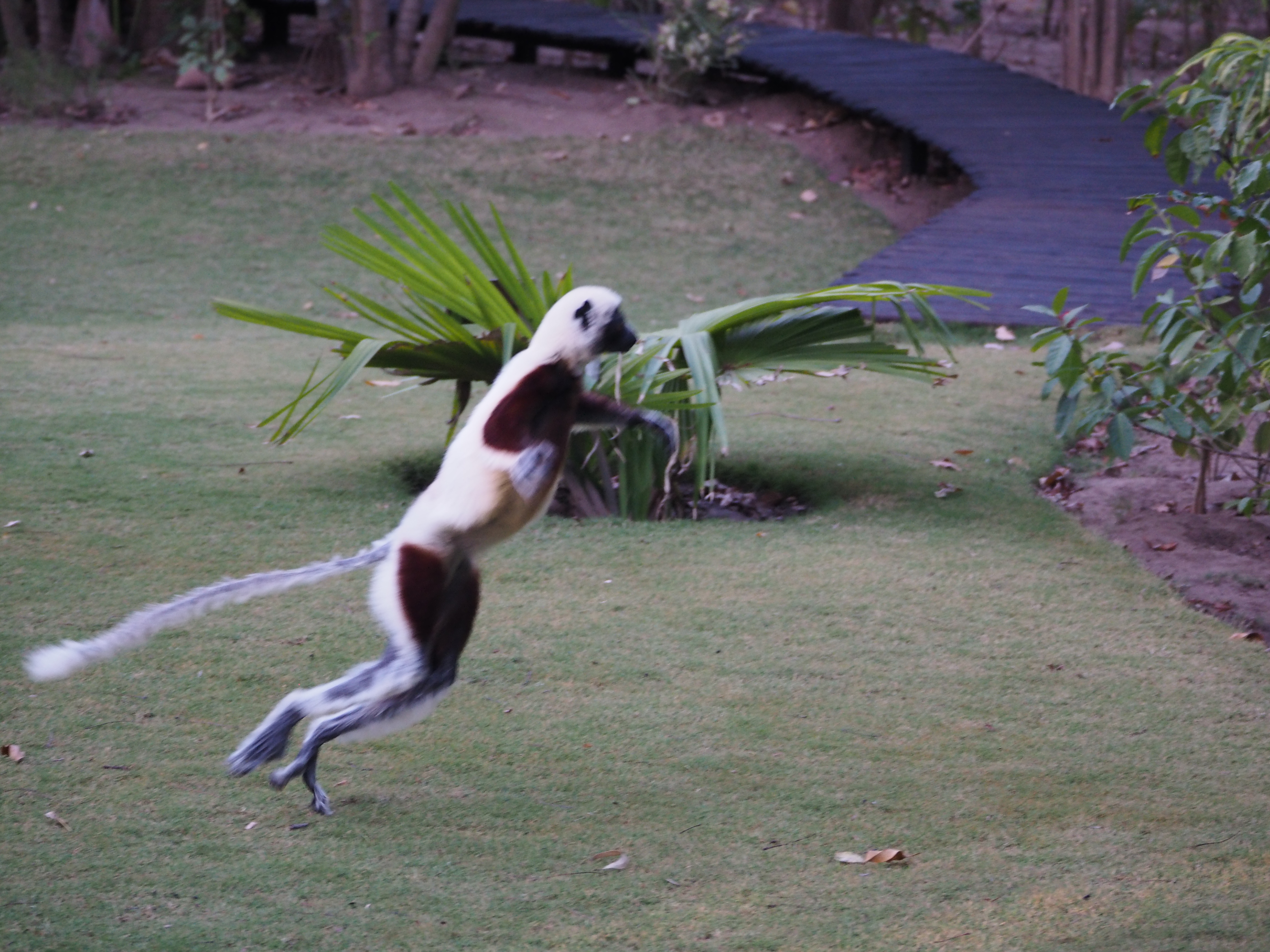 Nonetheless they are extremely agile and athletic. When Sifakas cross open ground they do so by bounding on their hind legs and are likely to finish the journey by bounding well up the trunk of the tree they are heading for.