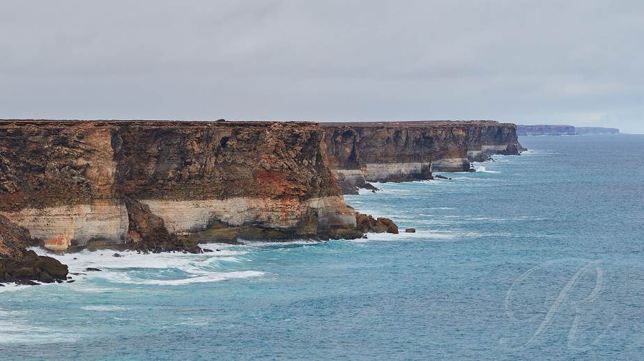 The day started in the Great Western Woodlands, 160,000 square kilometers of mallee and other eucalypts located between Australia’s moist, cooler south-west corner and its desert interior. As we traveled east the woodland was interspersed with open saltbush patches which slowly came to dominate until we were on the Nullarbor Plain. No trees here. Our first camp site was on the cliffs looking out at the Southern Ocean and the Great Australian Byte.