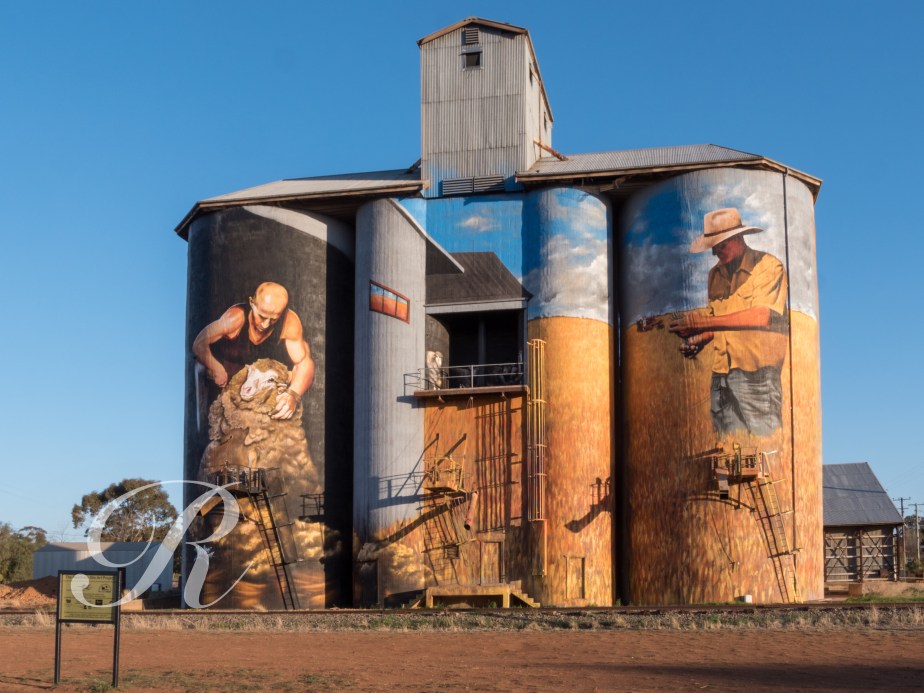 The silo art trail stretches from Rupanyup (Remember to say Re-pun-yip) to Patchewollock about 200 km north. It’s classic sheep-wheat country.