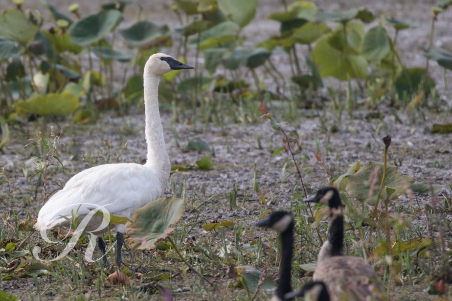And leads to an extensive parking area on the lake shore. Back from the shore there is a boardwalk through the woods again. This is in good condition. So, excellent access, shore birds on the shore, long-legged birds in the marsh, swimming birds on the water and bewilderment on the board walk.