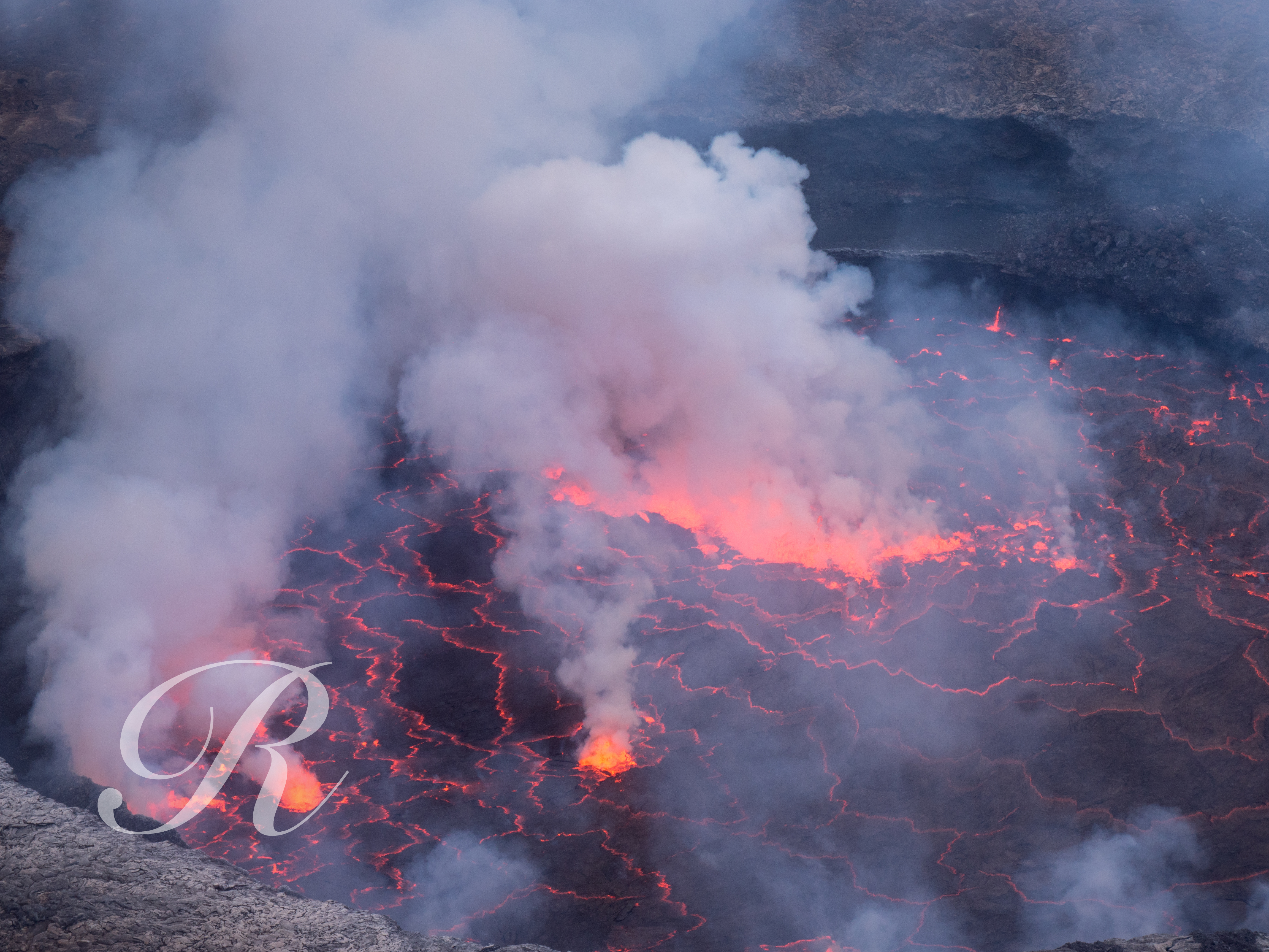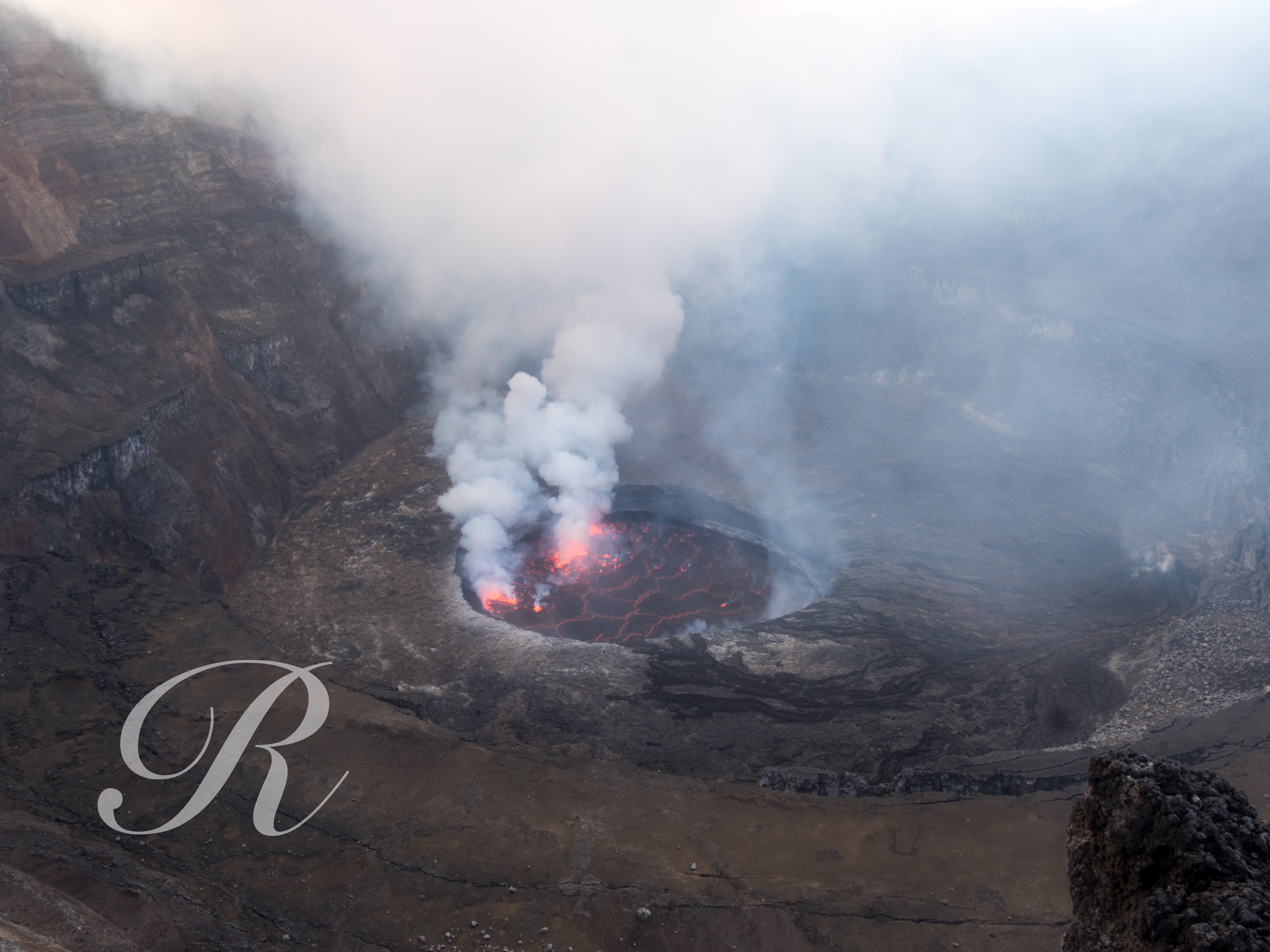 The hot spots played across the surface, geysers of hot lava occasionally spewed into the air, the smoke became denser or lighter. If you’ve ever lost yourself in contemplation of a fire it was a fraction of the experience that Nyirongongo’s crucible has to offer.