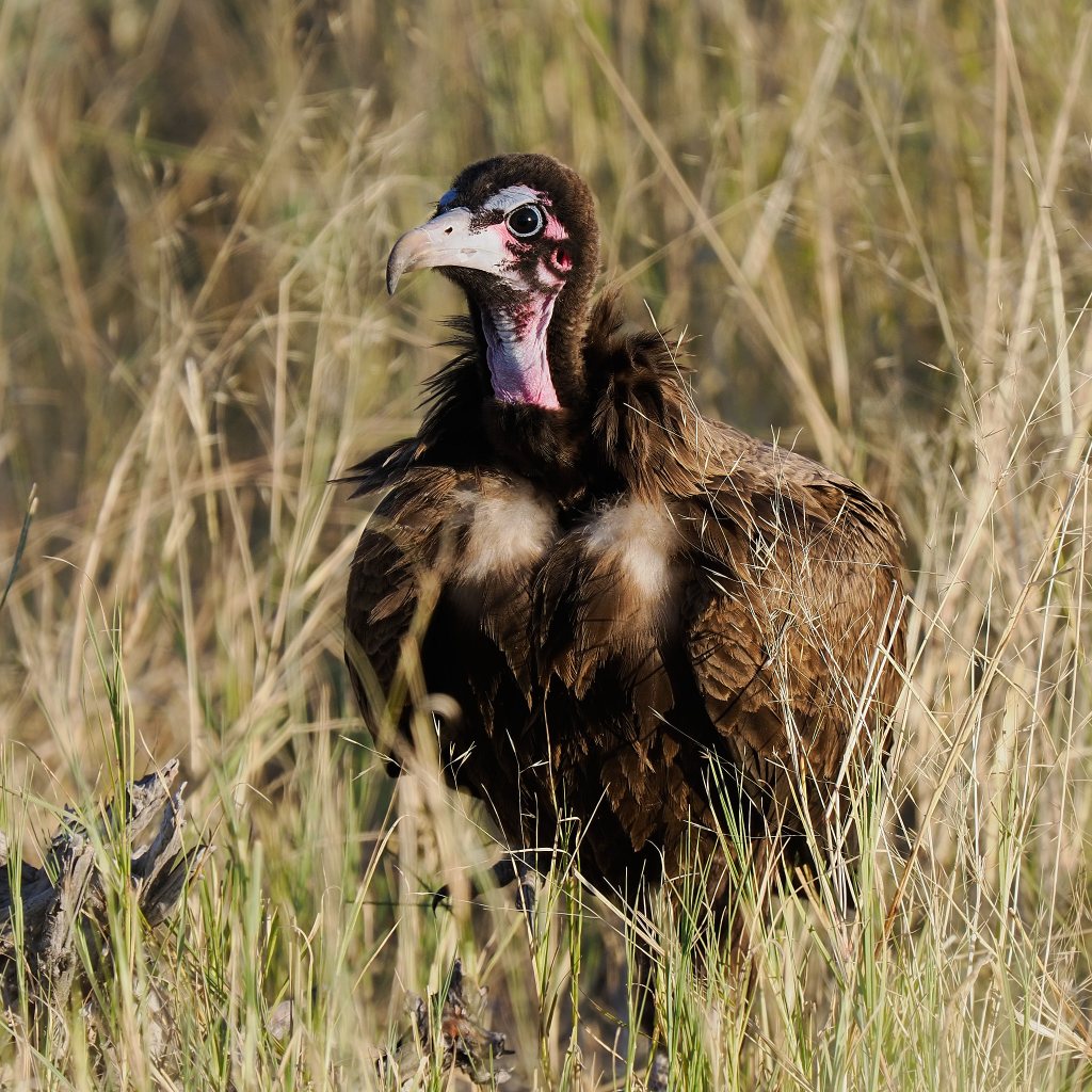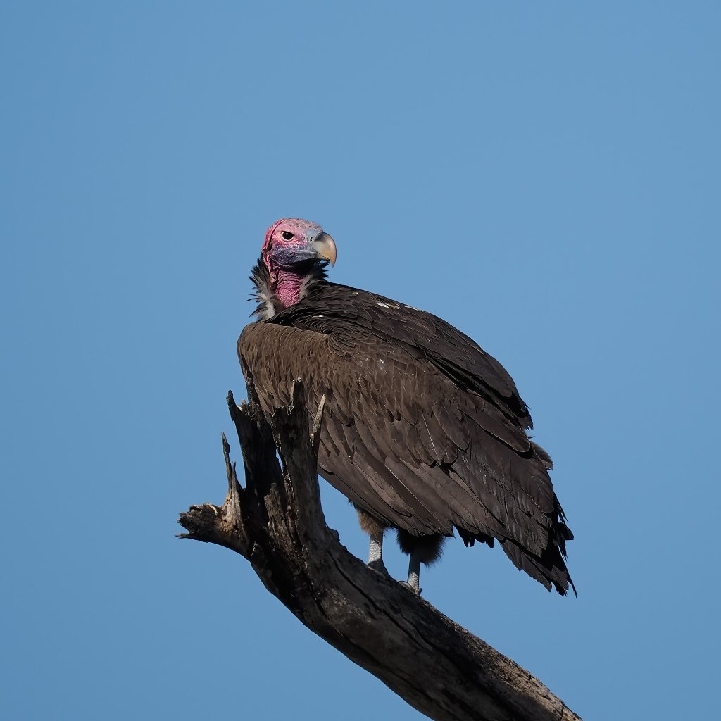 The vast majority of the vultures were White-backed. There were a few Hooded and just a couple of Lappet-faced. Each has its own specialisation. The White-backed Vultures were clearly the primary demolition experts. Hooded Vultures are smaller, have proportionally longer, finer, sharper looking bills. Good for cleaning up the hard to get at left overs. Lappet-faced are more powerful looking outfits that I imagine could deal with the tougher materials.