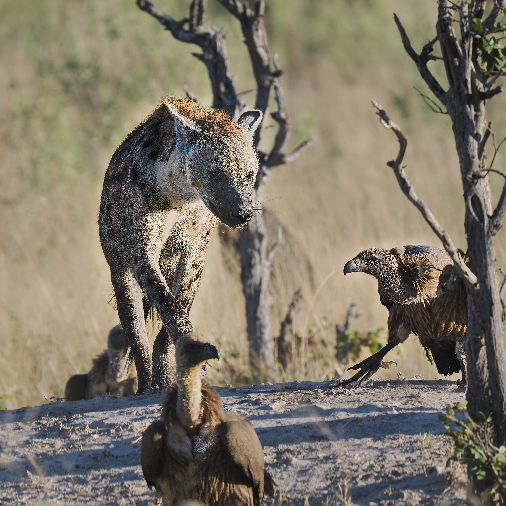 Hyenas and jackals were still around but seemed to have had their fill for the time being. There wasn’t much interaction away from the carcass but there were hundreds of vultures in the trees and on the ground. A few Marabou Storks were also waiting about.