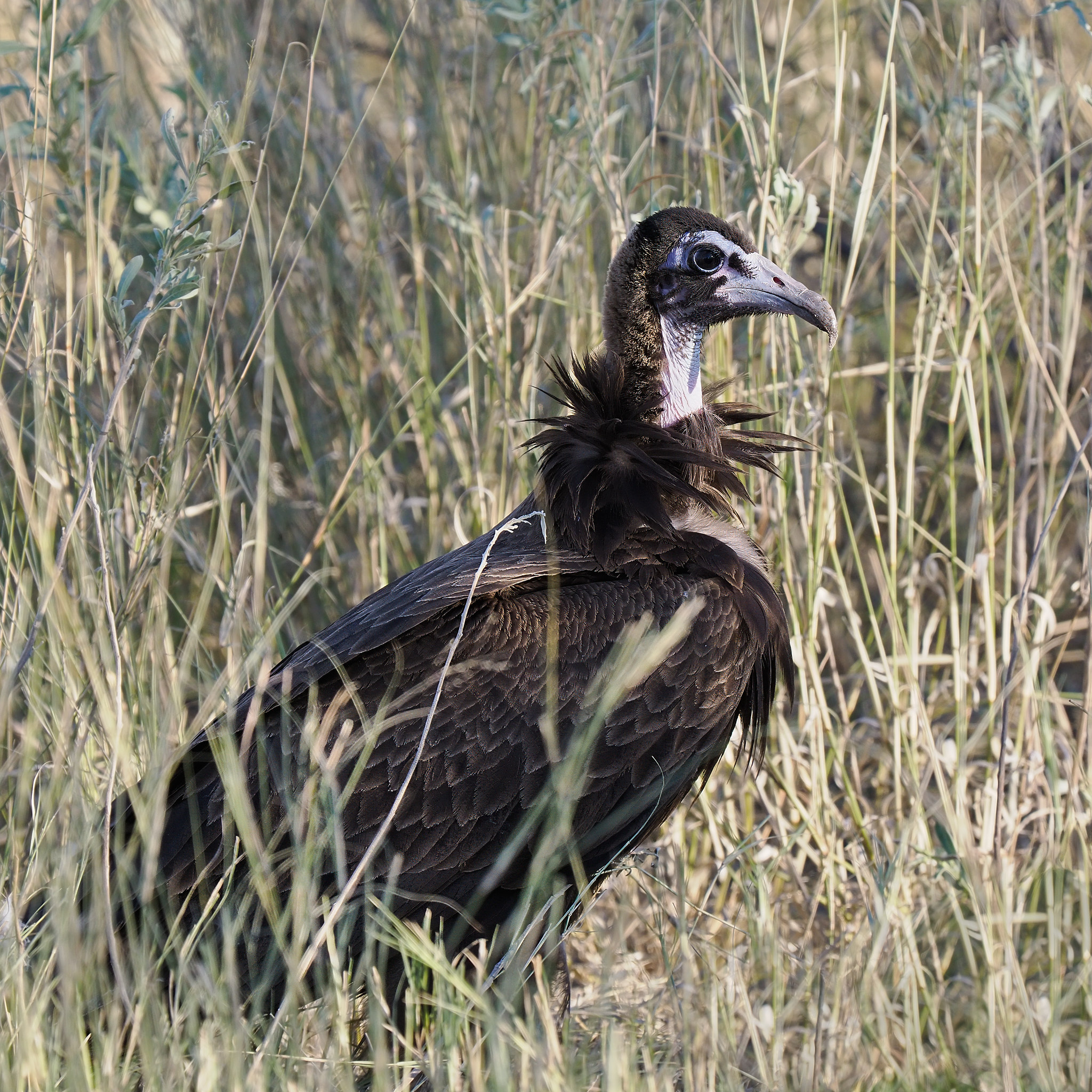 The vast majority of the vultures were White-backed. There were a few Hooded and just a couple of Lappet-faced. Each has its own specialisation. The White-backed Vultures were clearly the primary demolition experts. Hooded Vultures are smaller, have proportionally longer, finer, sharper looking bills. Good for cleaning up the hard to get at left overs. Lappet-faced are more powerful looking outfits that I imagine could deal with the tougher materials.
