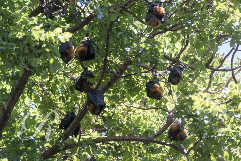 They choose humid shady places for their communal daytime roost and fly out as much as 50km at night to feed. Presumably they have been summer visitors to Victoria for centuries. Europeans have planted ornamental figs and orchards of fruit trees that have induced them to stay. From 1986 there has been a permanent colony in the Botanical Gardens in Melbourne and since then a few colonies have formed at other sites. The Bendigo colony began in 2010 where there are about 2000 bats in summer with about 200 staying over winter.